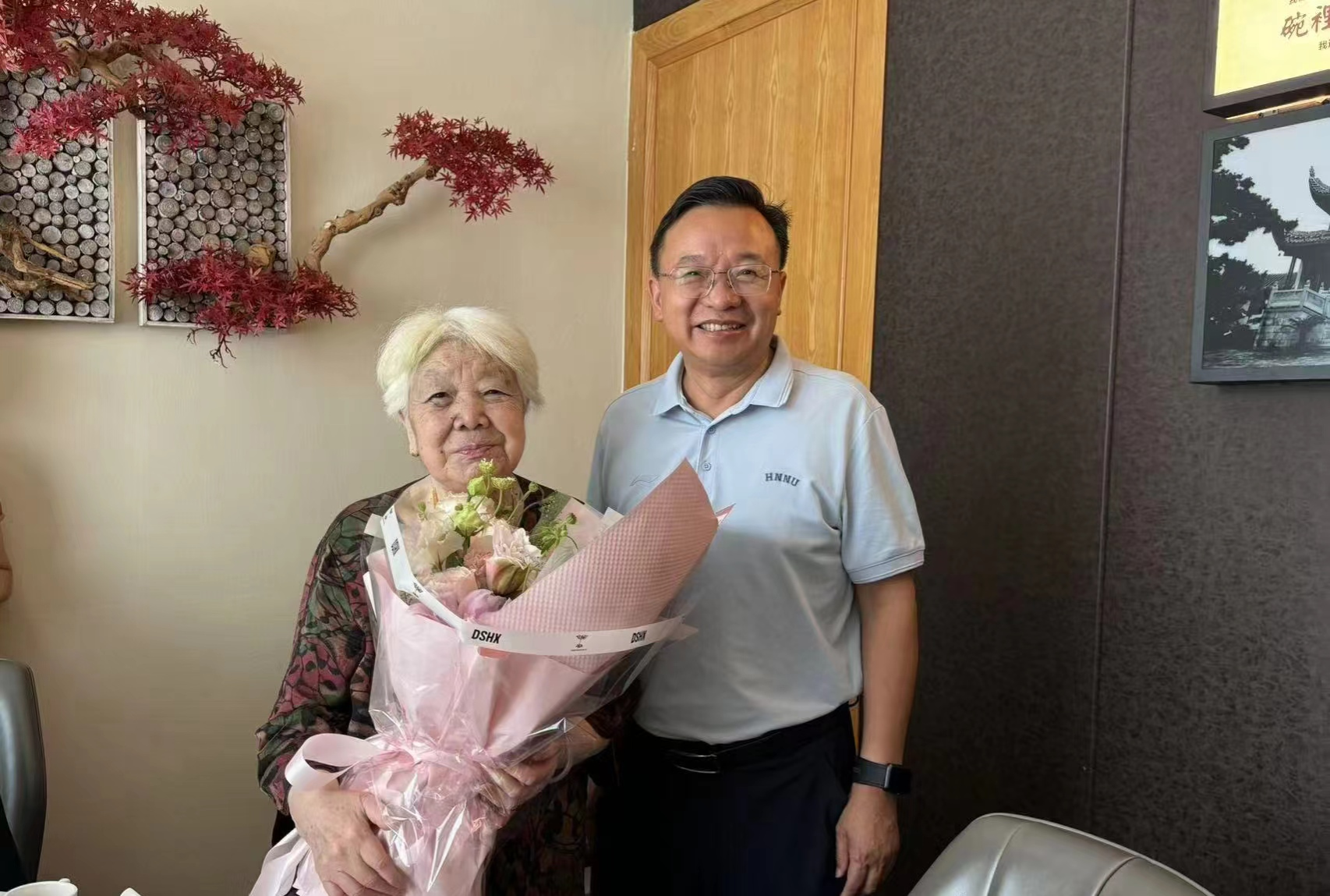 刘仲华来到离休干部、原副校长雷普文家中。他向雷老介绍了学校“双一流”建设发展情况,表示学校取得的成绩离不开老一辈的努力和付出;他聆听了雷老讲述革命工作经历,衷心祝愿雷老节日快乐。