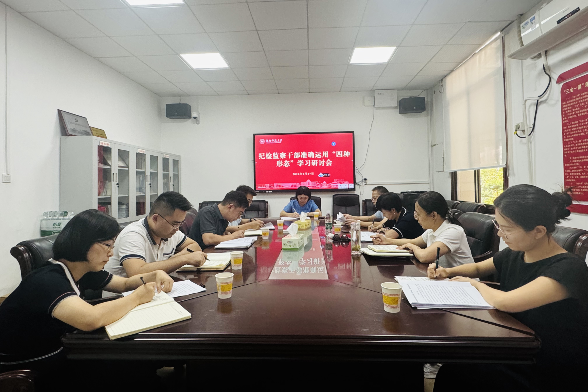 会议强调,《办法》系统总结了纪检监察机关运用“四种形态”的经验做法,首次以党内法规的形式对“四种形态”作出全面规定,是对“四种形态”的具体化、规范化、制度化,纪检监察干部要认真贯彻执行《办法》,提高依规依纪依法履职能力。要深刻认识“四种形态”的功能定位,坚持两个责任联合联动贯彻执行好“四种形态”,做到宣传教育与监督执纪同向发力,一体推进“三不腐”,营造学校风清气正的政治生态。