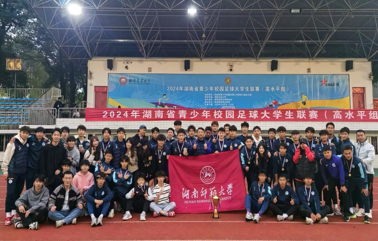 (供稿 体育学院)10月20日,2024年湖南省青少年校园足球大学生联赛(高水平组)在湖南农业大学足球场落下帷幕,我校男、女子足球队通过点球以3:2和7:5的成绩战胜对手,包揽男女子组冠军。