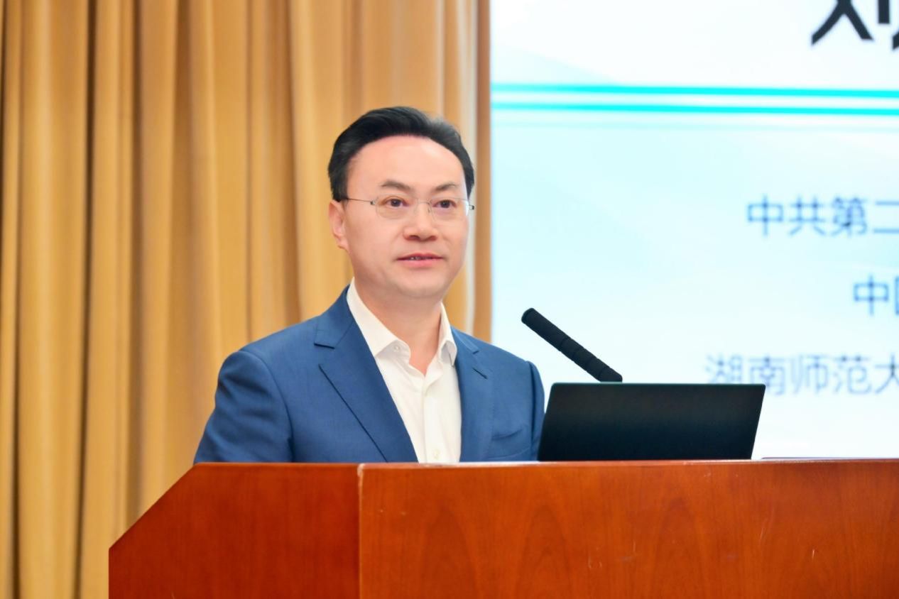 刘仲华代表学校对总决赛的成功举办表示热烈祝贺,对给予我校承办总决赛大力支持的各有关单位、领导和嘉宾表示衷心感谢。刘仲华介绍了我校近年来“双一流”建设、学科发展、人才培养等方面取得的成绩。他表示,地理科学学院底蕴深厚、特色鲜明,近年来发展取得的可喜成绩值得肯定。希望通过大赛,培养出更多具有国际视野、创新精神和社会责任感的地理学人才,为我国的地理学教育和科创事业、中国式现代化建设和人类社会的可持续发展作出新的更大贡献。
