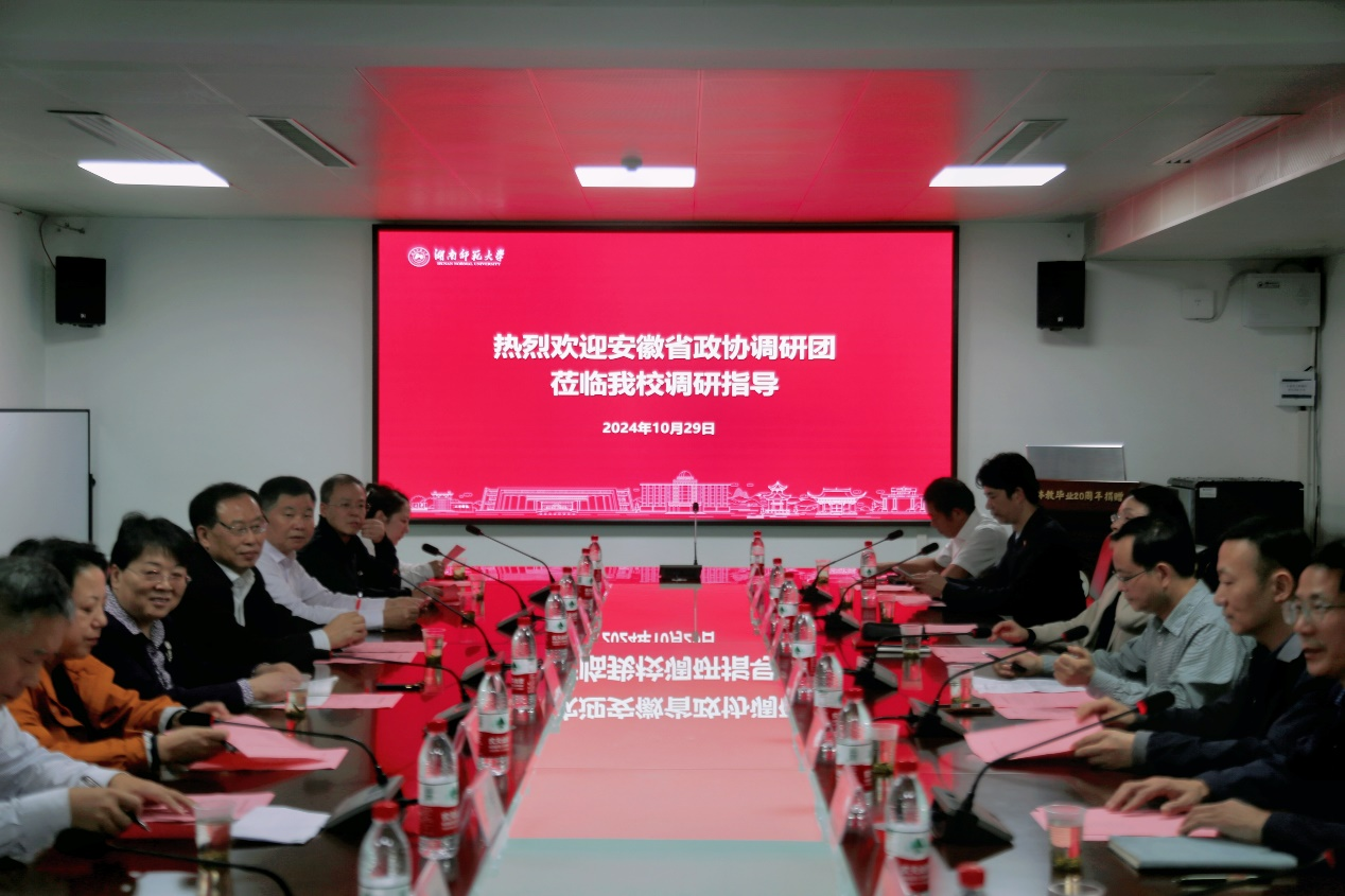 (记者 吕海霞 卢余彤)10月29日下午,安徽省政协副主席罗平率团来我校走访调研,座谈会在涵健馆二楼会议室举行。湖南省政协文教卫体和文史委员会副主任彭力,副校长潘安练陪同调研并出席座谈会。