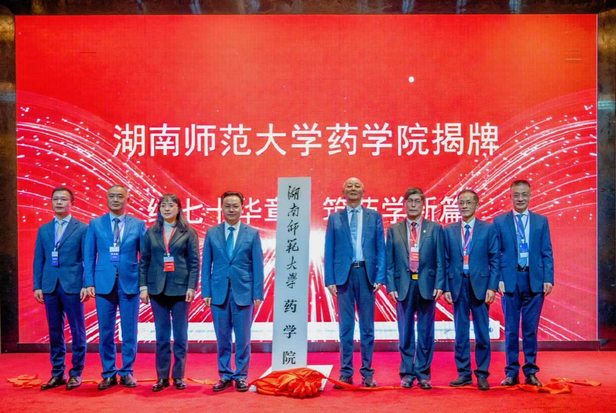 中南大学湘雅医院临床药理研究所所长、中国工程院院士周宏灏,刘仲华,姚咏梅,李焕德,廖端芳,药学院副院长冯星、李专,药学院党支部书记杨小平共同为药学院成立揭牌。