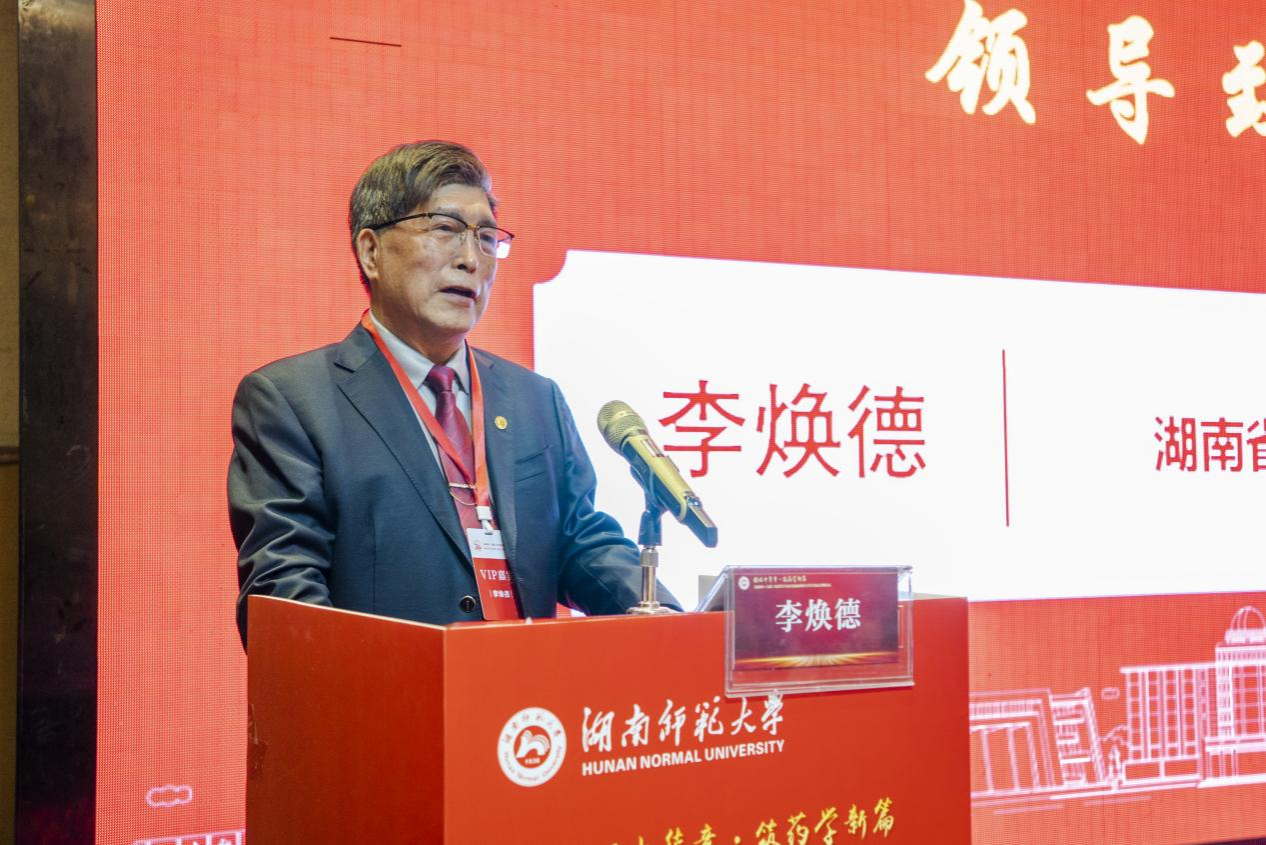 李焕德代表湖南省药学会衷心祝贺药学院的成立并为学院赠书。他表示,我校药学教育对湖南省药学会的起源与70年的发展产生了积极影响,为省内药学事业、药学人才培育做出了重要贡献。期待药学院努力打造生物医药人才高地,凝聚起科技创新的强大精神力量,谱写医院药学高质量发展新篇章。