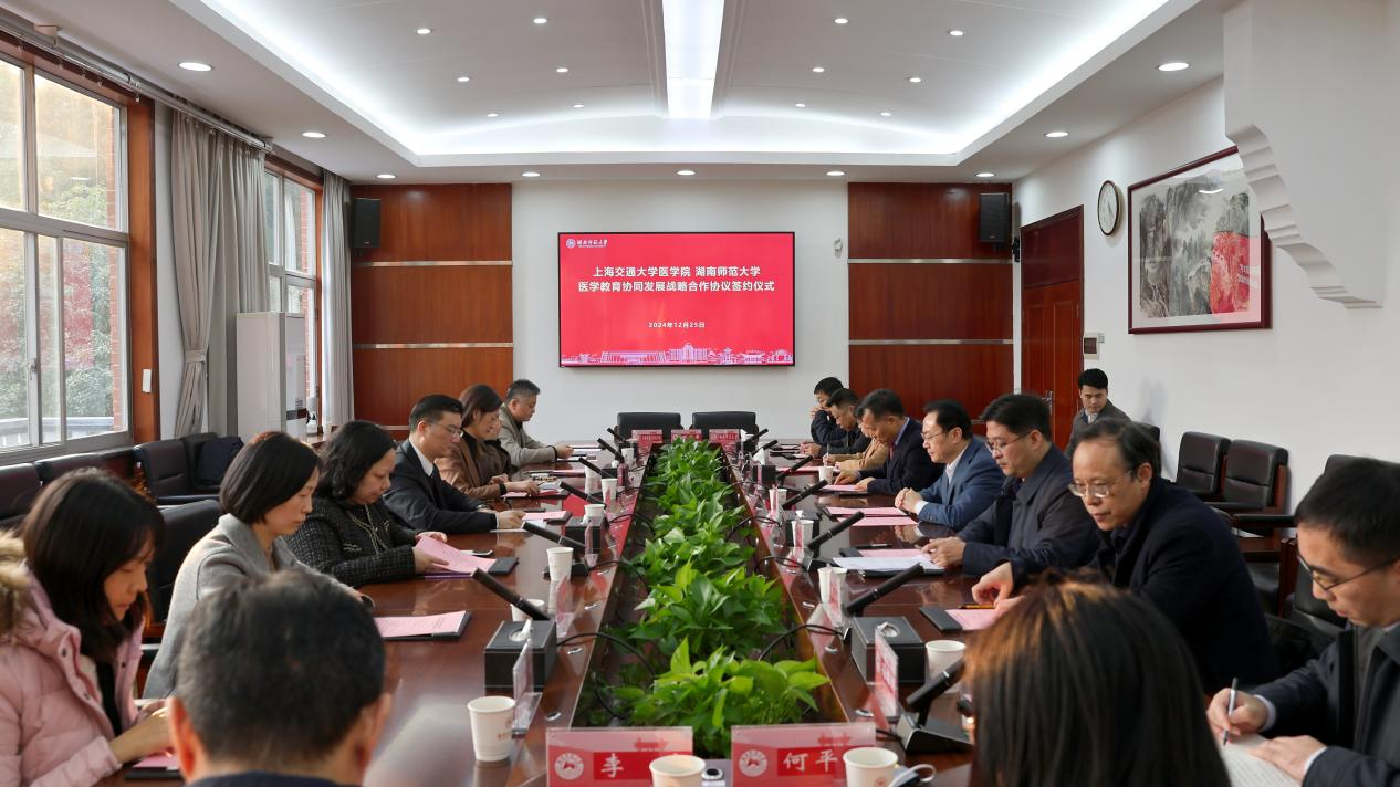 (记者 黄依依 武晓露)12月25日下午,上海交通大学医学院与我校医学教育协同发展战略合作协议签约仪式在校办公楼二会议室举行。上海交通大学医学院党委副书记、副院长吴正一,中国工程院院士、我校校长刘仲华出席仪式。会议由医学部党工委书记、主任祝益民主持。