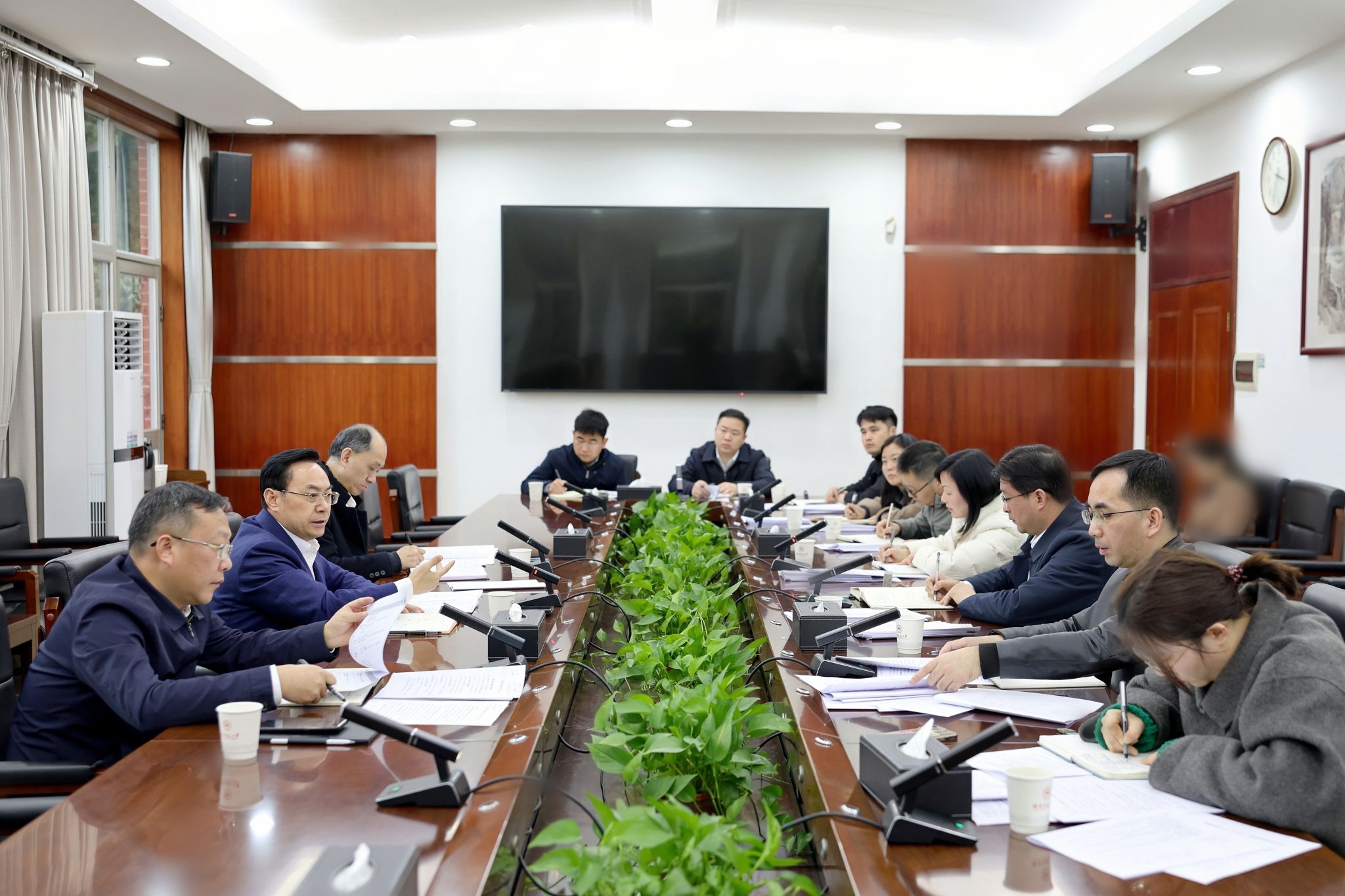 在发展规划与学科建设处,处长孙岳兵对该处2024年亮点工作和2025年工作设想作专题汇报。刘仲华充分肯定了发规处的各项工作,指出发规处是一支富有战斗力的优秀团队,这些年啃了不少硬骨头、打了不少攻坚战,取得了可圈可点的成效。他强调,作为学校发展建设的核心智囊团,发规处承担着学校战略规划、综合改革、学科建设、对外合作、政策研究等方面的重要职能,要始终以守正创新、开拓进取的精神和开阔的视野、格局,为推动学校“双一流”建设和高质量发展出谋划策。他指出,2025年是“十四五”规划收官年、“双一流”建设冲刺年,全处同志要再接再厉、卯足劲头,要系统作好“十四五”规划总结,前瞻谋划“十五五”发展蓝图;要锚定“双一流”建设验收、新一轮学科评估、新校区建设的要求,统筹推进学科生态优化和资源整合;要加快完善二级学院年度业绩考核体系,协同相关部门健全激励机制,推动高质量发展。