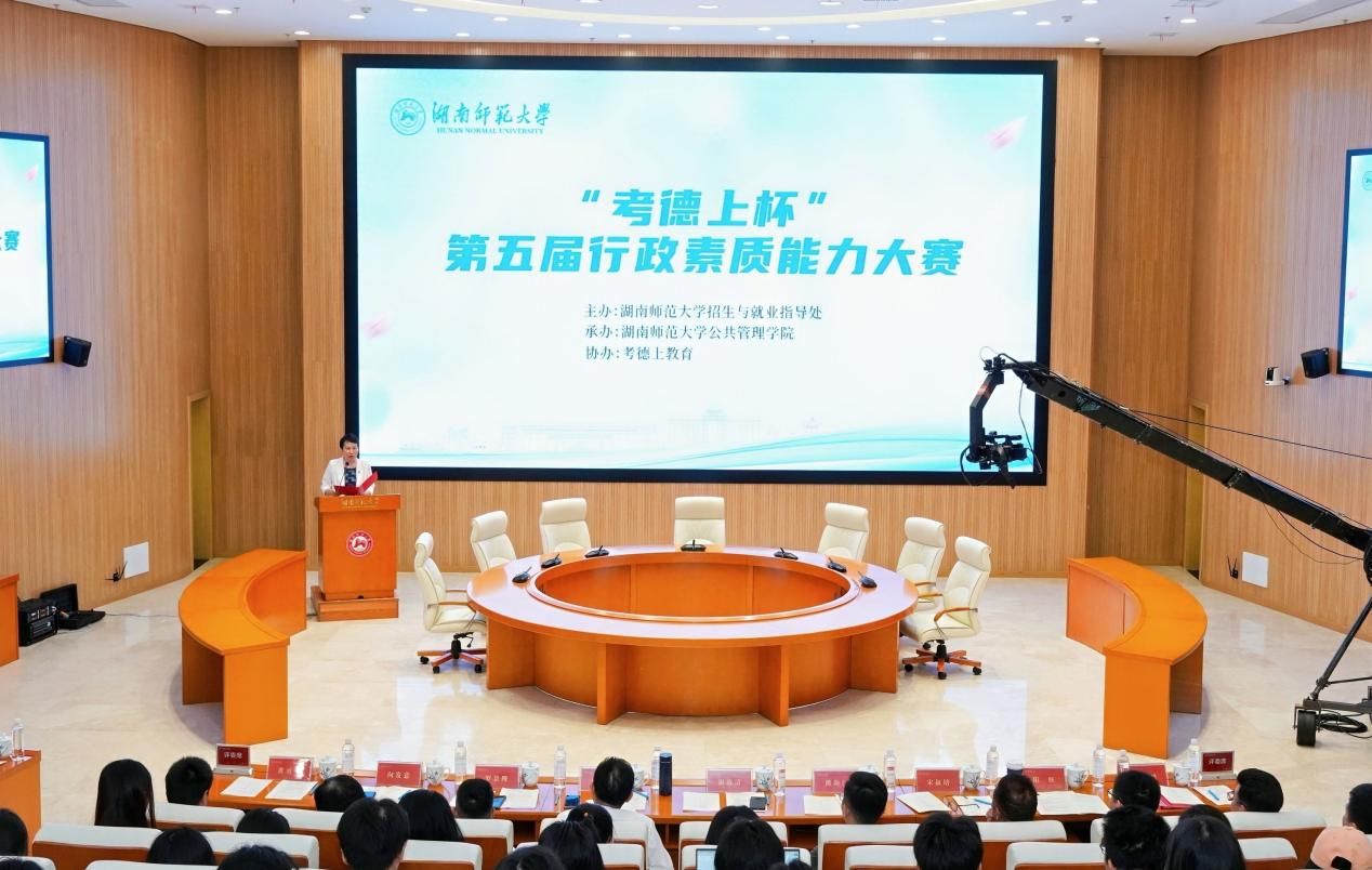 (通讯员 席子坤 刘剑 康婕)5月23日上午,我校在图书馆报告厅举办第五届行政素质能力大赛决赛。考德上教育董事长田亚东、我校副校长谢资清出席活动。