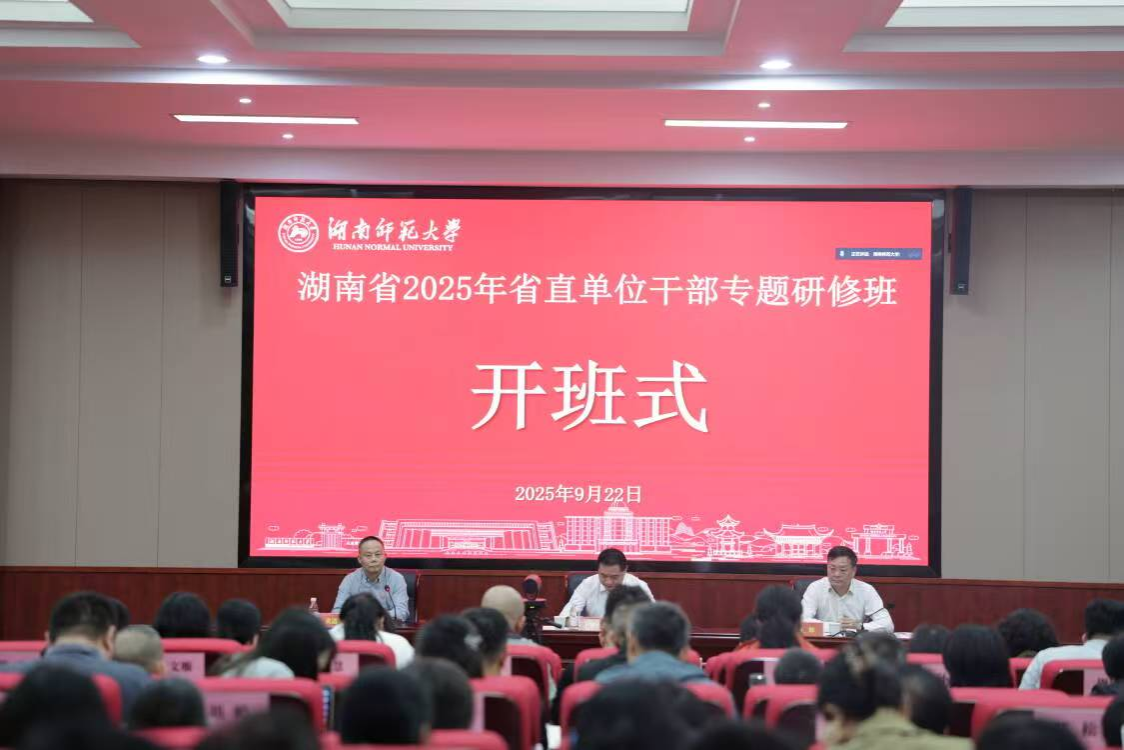 (供稿 党委组织部 记者 谭伟静)9月22日上午,湖南省2025年省直单位干部专题研修班在我校和中南大学、湖南大学、中南林业科技大学等四所高校同步开班。开班式在我校设主会场,其他三所高校设分会场。省委组织部部务委员上官大富,我校党委委员、副校长王辉出席开班式并讲话。