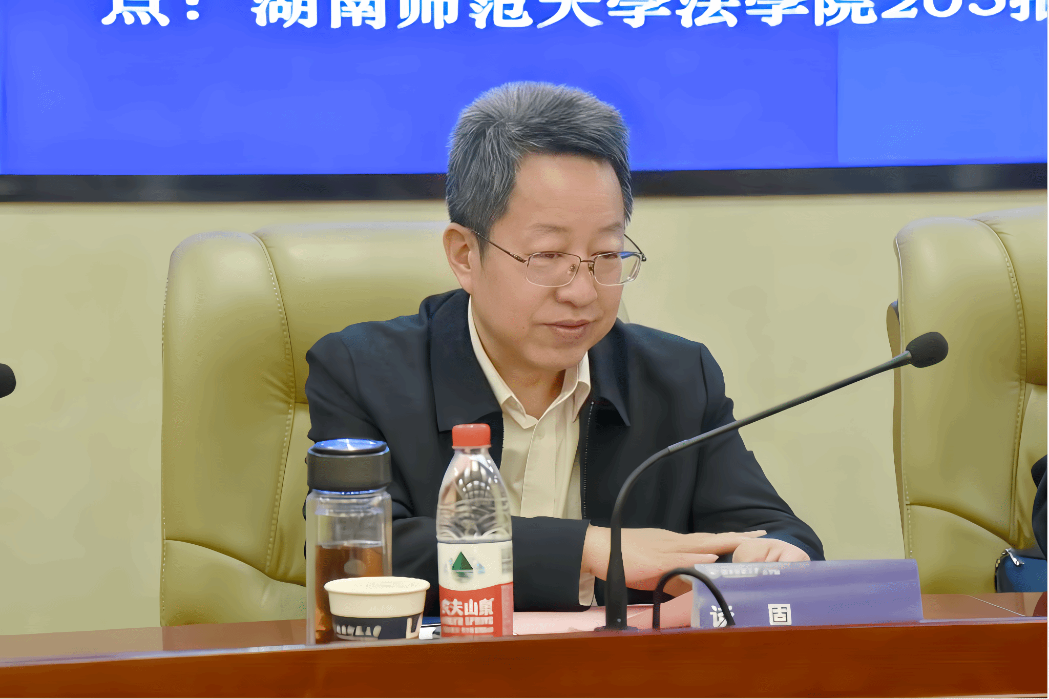 刘怀德向与会领导和专家致以热烈欢迎,并介绍了我校的办学历史、学校与湖南省人民检察院共建检察理论研究基地的历程,以及检察学微专业的课程设计与师资队伍。他勉励同学们珍惜学习机会,树立“以人民为中心”的法治思维,努力成长为高素质法治人才。