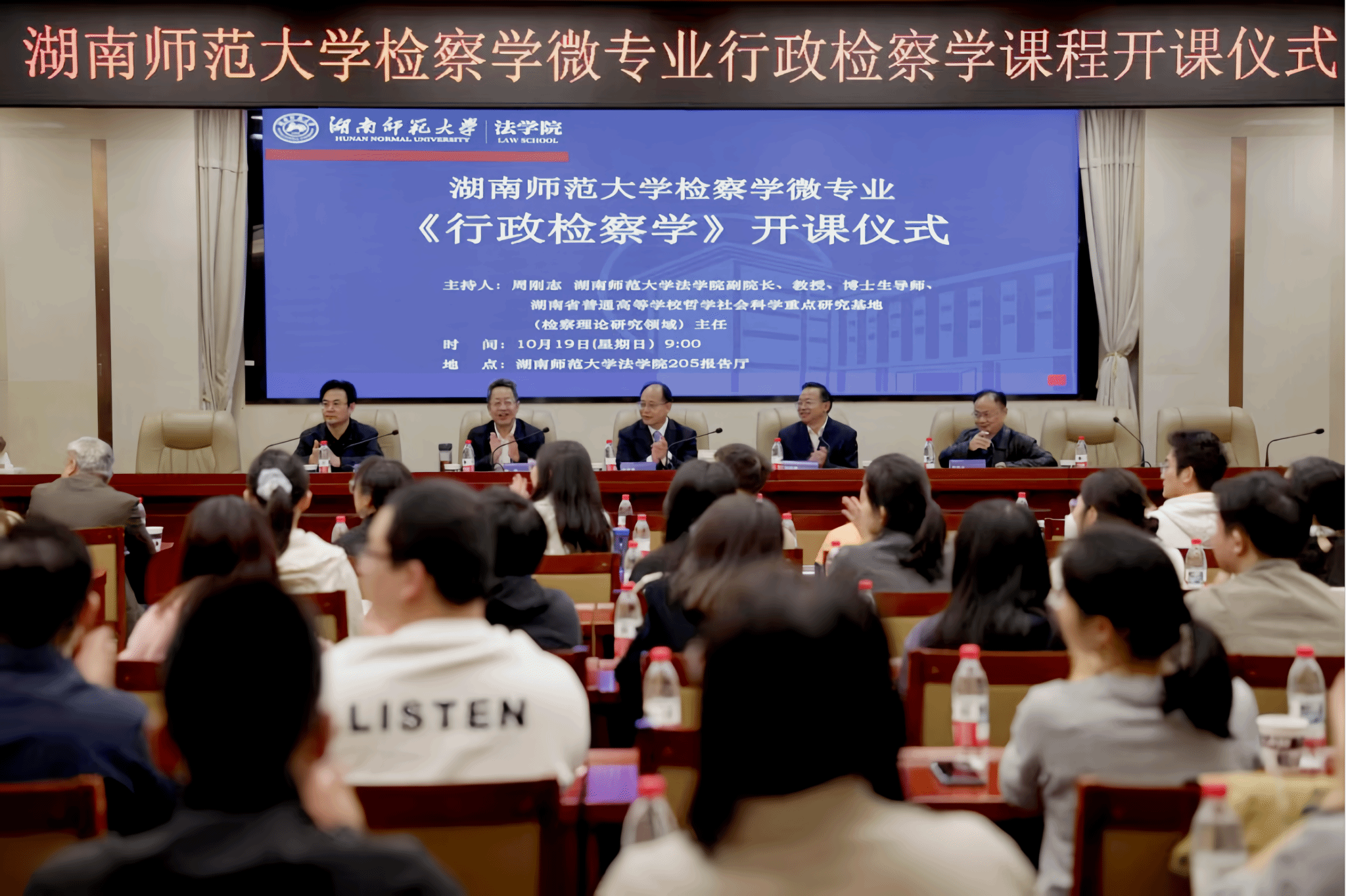 首届检察学微专业学生,中南大学、湖南工商大学、安博线上平台等高校师生,以及省检察院和长沙、株洲、湘潭等地部分行政检察干警共120余人参加开课仪式。