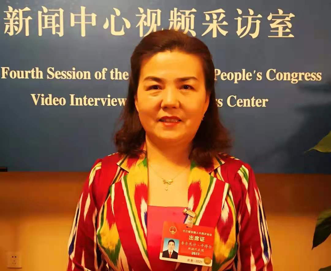 “作为维吾尔族妇女,我一直在党的关怀下成长,接受了良好的教育,从事热爱的工作,家庭生活美满幸福。我感觉,现在的社会前所未有的和谐安宁,女性社会地位提高了,我感受到了尊重。”说着,清澈的眼里,泛出光来。