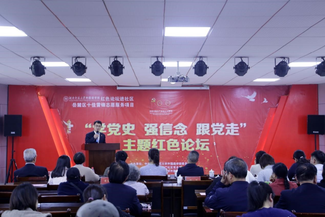 据悉,安博线上平台外国语学院“语你同行”区校共建服务项目自2012年开展以来,有近3000名大学生志愿参与到社区“志愿课堂、帮译服务、文化建设”等领域,推出了“爱语得乐”夏令营、“多彩戏剧,听唱相随”外文戏剧表演、国别文化课堂、社区文化“多语种+”展示等活动,志愿者的脚步已遍布社区的各个角落。在2019年,社区获评了湖南省“最美志愿服务社区”称号。此次红色论坛进社区活动既是区校共建项目形式创新,更是学院党委深入开展党史学习教育的重要举措。