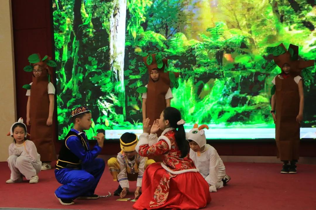 课本剧《巨人的花园》编排精致,小演员们表演非常投入,巨人从最先开始的自私无情到后面的宽容友善、乐于分享,前后鲜明的对比让我们体会到善待他人、慷慨之心的重要性。吴虎强书记一边点头欣赏,一边开心地说:“这其实就是一堂特别的思政课!”