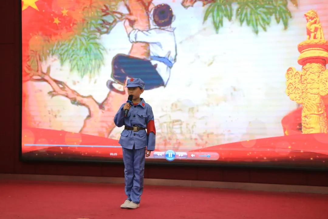 二年级孩子们个头不高,但气势不输,表演的诗朗诵《长征》,气势如虹。八十多年前,革命先烈们爬雪山,过草地,抢大渡河,夺泸定桥,创造了一个又一个历史奇迹。这些场景仿佛历历在目,不禁让人肃然起敬。