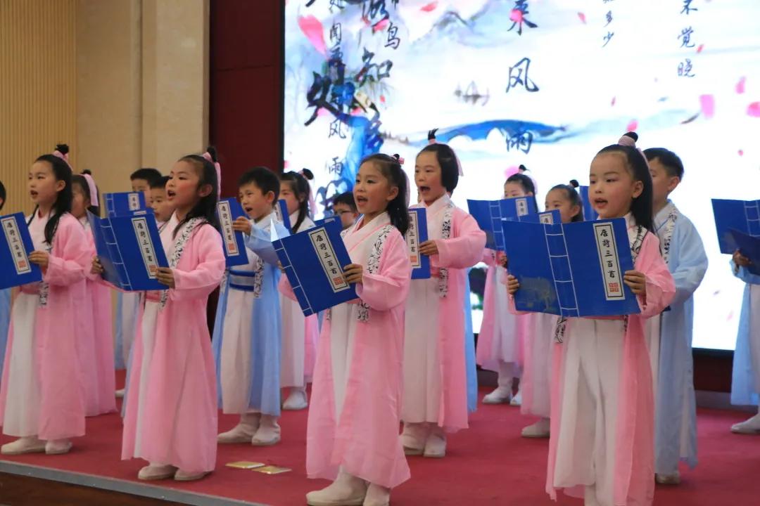 “熟读唐诗三百首,不会作诗也会吟”。一年级小朋友用诵读、歌、舞混编的新形式表演的《读唐诗》将本次活动推向高潮。