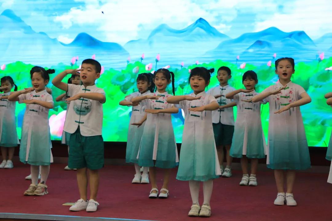 江南美,美江南,如诗如画忆江南。一年级同学们灵动的歌声和可爱的动作,让江南之美魅力尽显。