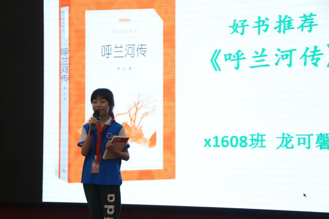 读书可以荡涤我们的心灵,编织我们的梦想。五年级龙可馨同学、季然同学、六年级刘孟昕同学分别为大家推荐了好书《呼兰河传》、《时光收藏人》、《今天我是升旗手》。简单的话语,真诚的表达,好书的能量在传递。