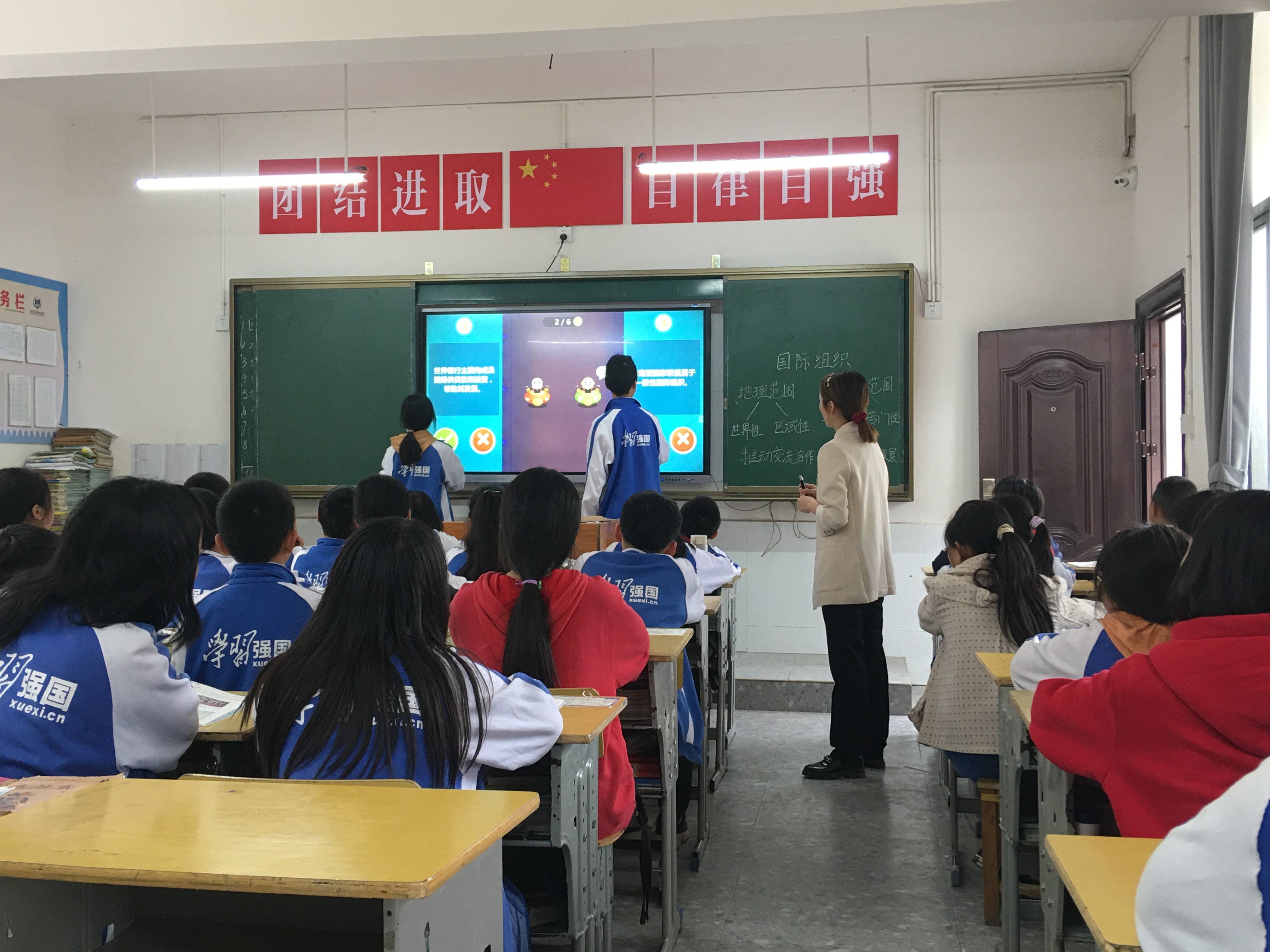 “学习强国”学习课堂上的互动式学习。