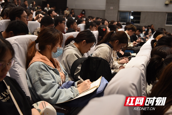 活动现场认真聆听的大学生。
