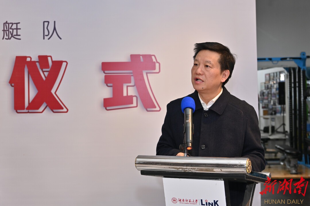 仪式上,李舜表示,此次赛艇队的成立在湖南乃至全国都是重要且有意义的事情,赛艇作为一项优雅团结的水上运动项目,对个人身体素质和心理素质都有一定的要求。作为湖南组建的首支高校赛艇队,湖南师大赛艇队的成立,是体教融合发展的进一步产物,湖南体育也将以此为契机,增强与高校、俱乐部之间的交流,协助组建更多的高校专项体育运动队。