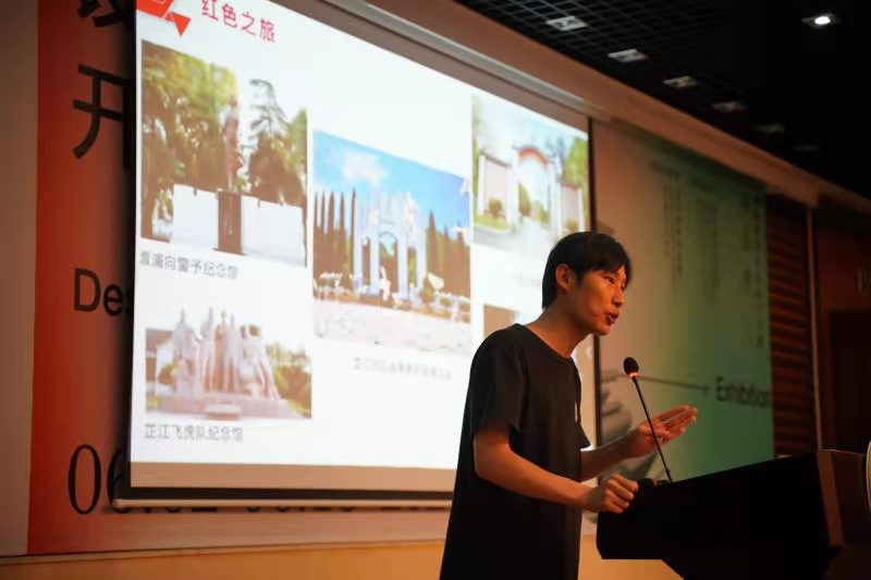 适逢中国共产党百年华诞,主讲人着重介绍了“通道转兵”这一重大历史事件的意义,鼓励学生们多关注怀化的红色资源,用创意弘扬红色文化,传承红色基因。
