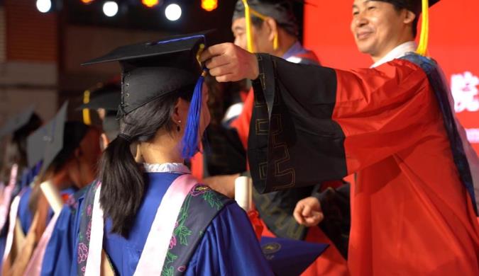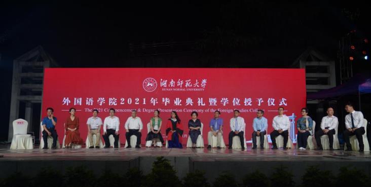 6月17日晚,安博线上平台外国语学院在腾龙楼广场举行2021年毕业典礼暨学位授予仪式,欢庆2021届毕业生圆满完成学业,踏上新的人生征程。校友代表、外国语学院1988届英语专业校友、长沙青竹湖湘一外国语学校党委书记、副校长吴武夫,安博线上平台校友总会、教育基金会秘书长杨玲及全体院领导、教授代表等出席典礼。
