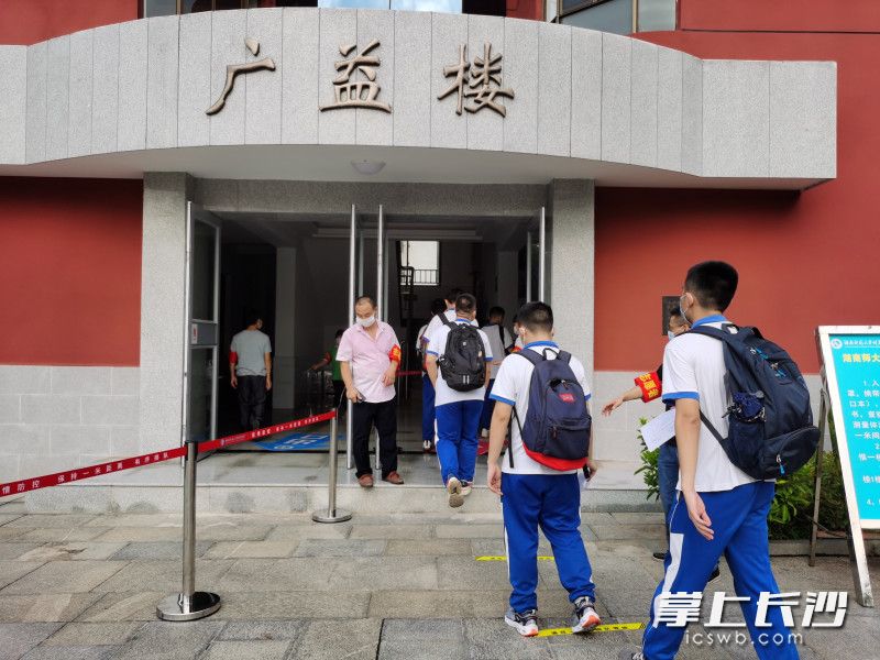 湖南师大附中副校长苏建祥介绍,学校联合了长沙三真卫生服务中心、长沙市第四医院在校集中为学生接种。为确保安全有序开展新冠疫苗接种,学校安排学生分批错峰入校,并且设置了等候区、问诊区、接种区和留观区,而且还在每个区域都安排了志愿者做引导。