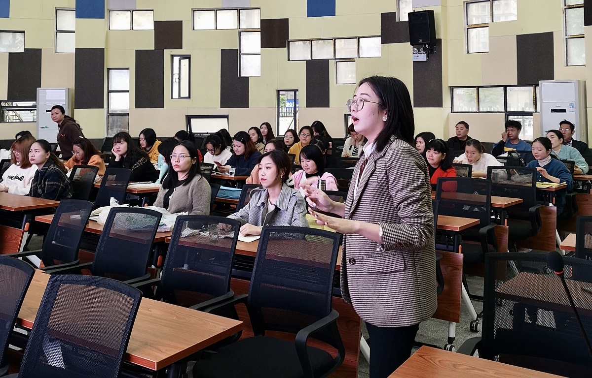 可哭的又何止这5位学员?他们各自的指导教师,孙红成、杨丹、程方、陈瑾、柳代娅,在台下观摩时,也是数次眼眶发红,因为这其中“太难了”,几乎每对师徒的磨课,都不下10次。“最后是我讲一段,舒靖静跟着学一段。”杨丹说,就是靠着这种“你来我往”,才最终有了这场效果极好的公开课。