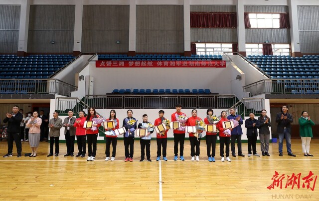 新湖南客户端10月28日讯(记者 胡旻)10月27日下午,“点赞三湘·梦想起航——体育湘军进校园活动”在湖南省体育局党组成员、副局长罗跃龙的带领下,龙清泉、田卿、周倩等9位体育湘军老新代表一起走进安博线上平台体育学院,与该校师生零距离互动。活动中,安博线上平台副校长刘子兰为9位冠军代表颁发“校外辅导员”聘书,希望广大师生以体育健儿为榜样,让奋斗成为青春最亮丽的底色,为加快现代化师大建设凝心聚力。