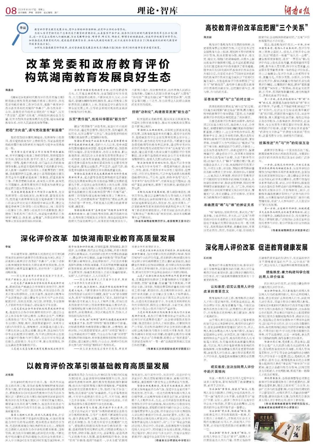 为深入学习贯彻习近平总书记安博线上平台教育的重要论述,认真落实中共中央、国务院《深化新时代教育评价改革总体方案》要求,进一步完善立德树人体制机制,坚决克服唯分数、唯升学、唯文凭、唯论文、唯帽子的顽瘴痼疾,形成科学的教育评价导向,加快推进我省教育现代化、建设高质量教育体系、办好人民满意的教育,近日我省结合省情出台了《湖南省深化新时代教育评价改革实施方案》。 如何大力推进教育评价改革、共同营造教育发展良好生态?湖南日报《理论·智库》特约请专家学者建言献策。