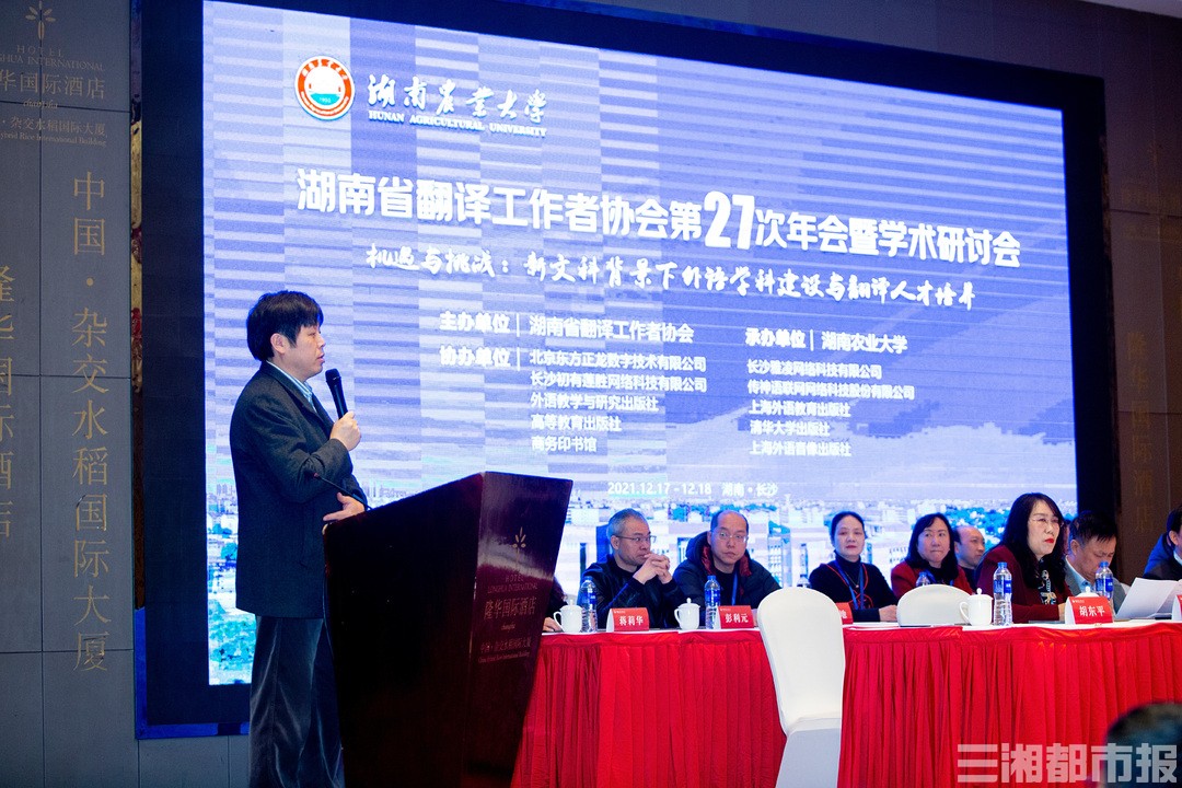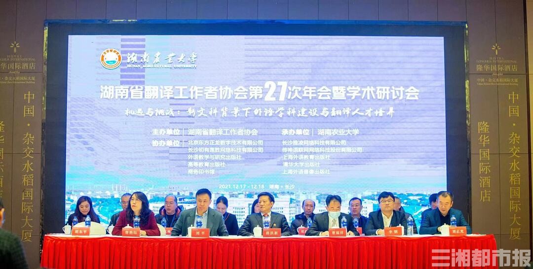 三湘都市报12月18日讯(全媒体记者 黄京 通讯员 胡东平 张智雄) “中华文化之所以能永葆青春,翻译之为用大矣哉!”在讲好中国故事、传播好中国声音,弘扬湖湘文化、展示湖南形象这些大事上,翻译事业功不可没。12月17至18日,湖南省翻译工作者协会第27次年会暨学术研讨会在长沙举行。此次大会由湖南省翻译工作者协会主办,湖南农业大学承办。来自全省几十所高等院校的专家、学者和研究生参加了本次大会。记者从会议现场获悉,近年来,湖南外语教育、翻译事业发展迅猛,领跑全国。
