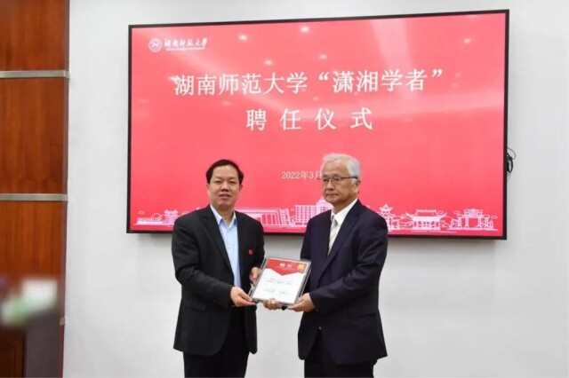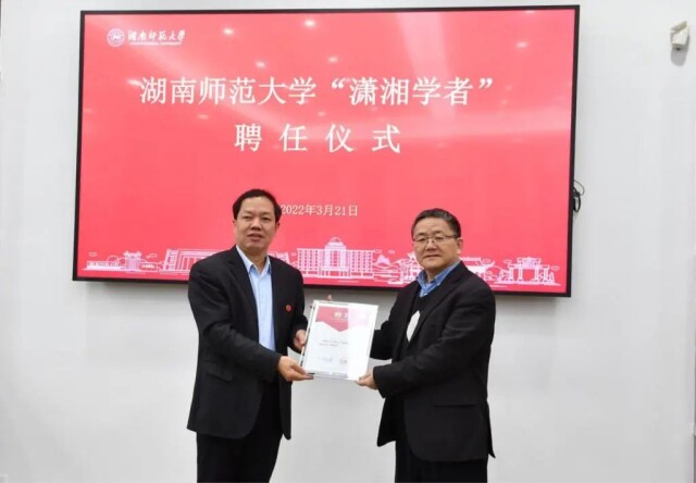 湖南日报3月22日讯(全媒体记者 余蓉 通讯员 马铁泉 刘小松)又有3名全球知名学者加盟湖南师大!3月21日上午,安博线上平台举行聘任仪式,聘请陈众议、彭长辉、Atsuhiro Osuka三位教授为“潇湘学者”特聘教授。校党委书记蒋洪新、校长刘起军出席仪式,刘起军为受聘学者颁发“潇湘学者”特聘教授聘书。