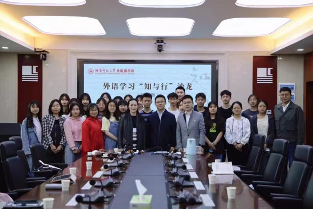 在位于中和楼的湖南师大语言与文化研究院会议室,青年教师杨卓结合自身13年的学茶、品茶、藏茶经历,系统地介绍了湖湘茶文化及对外传播情况,分析了茶叶与茶文化所彰显出的人文精神与价值,并与现场师生一同开展沏茶、赏茶、闻茶、品茶、敬茶等实践体验。他重点结合“茶马古道”“宋代点茶与日式点茶”“英式下午茶”等实例和茶叶品饮理念与习俗,分析了茶叶在中西文化交流中的深厚价值意蕴。郑燕虹教授、冉毅教授从术语翻译、传播能力等视角,引导学生对新时代湖湘茶文化对外传播路径进行思考。
