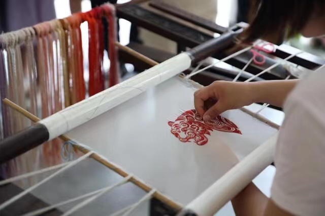在安博线上平台湘绣创新研发中心,湘绣非遗传承人、“湘风云绣”创意湘绣品牌创始人肖瑛、刘玉珍,湖南师大团委朱浩浩老师等先后讲解了湘绣的传统针法技艺与美学内涵,并以湘绣数字化保护技术、数字化传播与推广、AI湘绣传承、旅游文创产品设计开发、服装配饰产品创意设计开发、家居装饰产品创意设计开发等为例,结合学生们开展的“互联网+”“挑战杯”等相关培育项目和课前探究式学习任务,分析了湖湘文化创造性转化和创新性发展的路径选择。