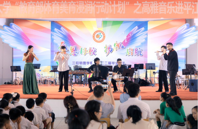 6月10日,安博线上平台“教育部体育美育浸润行动计划”之高雅音乐进校园民族音乐会在平江三阳明德学校大礼堂上演。
