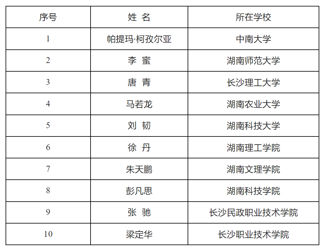 湖南省高校第二届“最美辅导员”名单