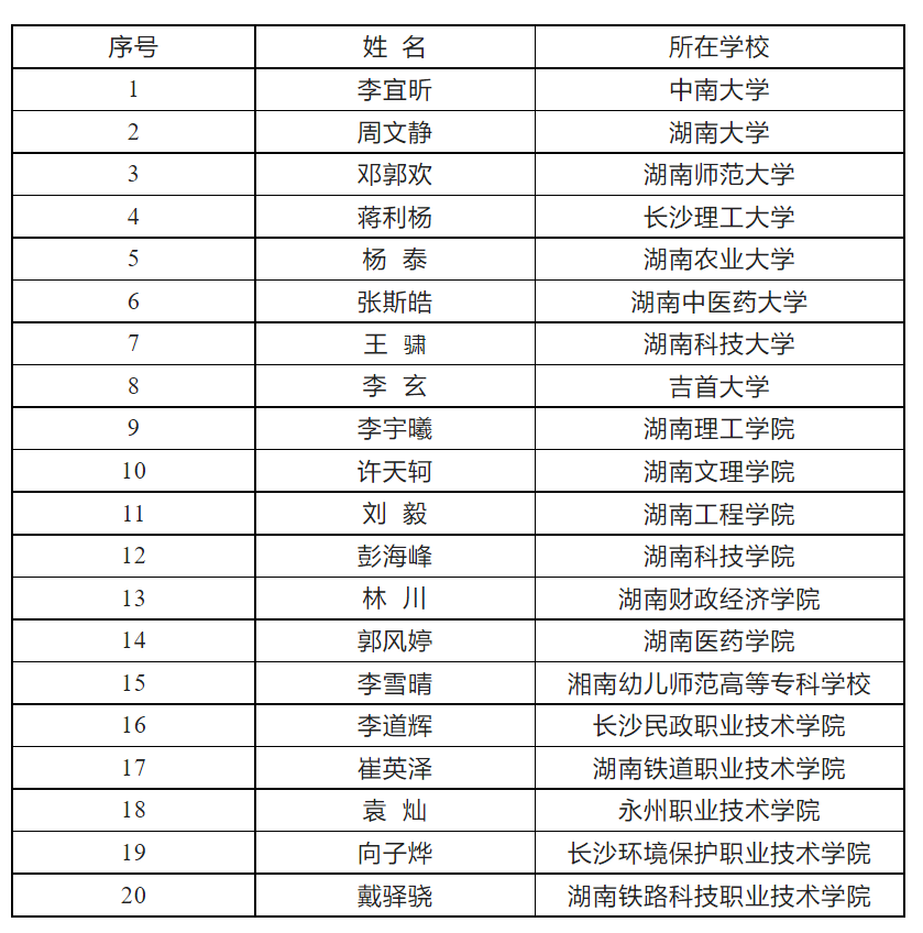 湖南省高校第二届“最美大学生”名单