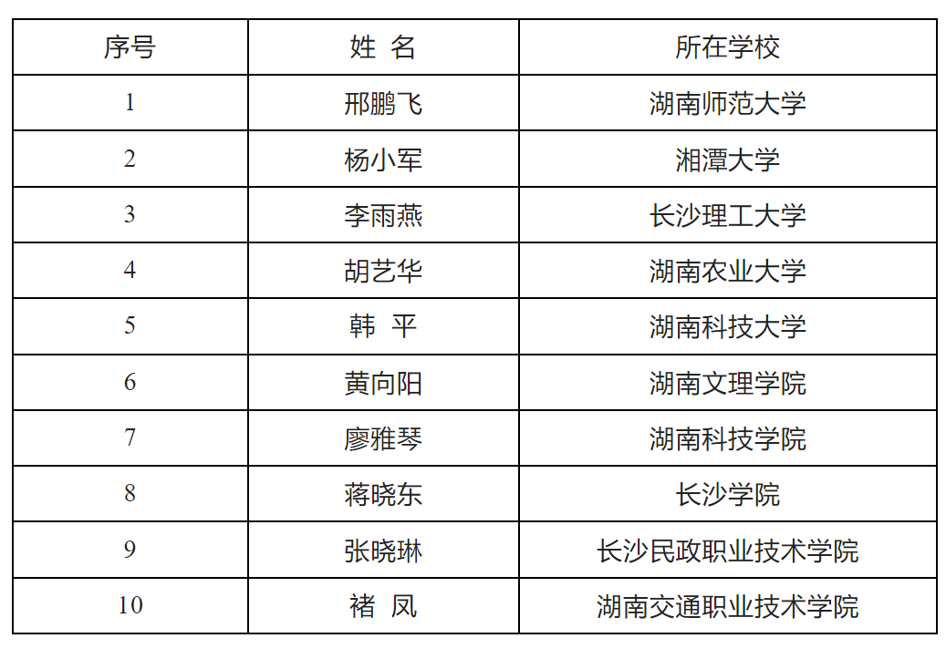 湖南省高校第二届“最美思政课教师”名单