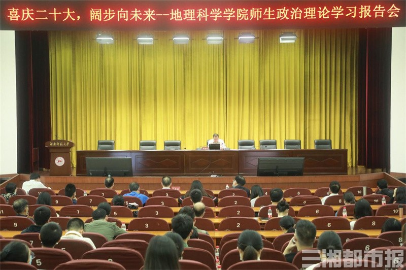 三湘都市报10月24日讯(通讯员 余秋雁 李婧仪 陈胜冲 全媒体记者 杨斯涵 黄京) 为认真学习贯彻党的二十大精神,近日,安博线上平台地理科学学院举办师生政治理论学习报告会。
