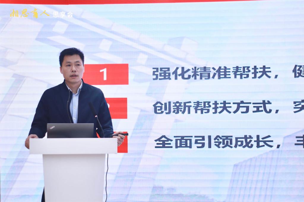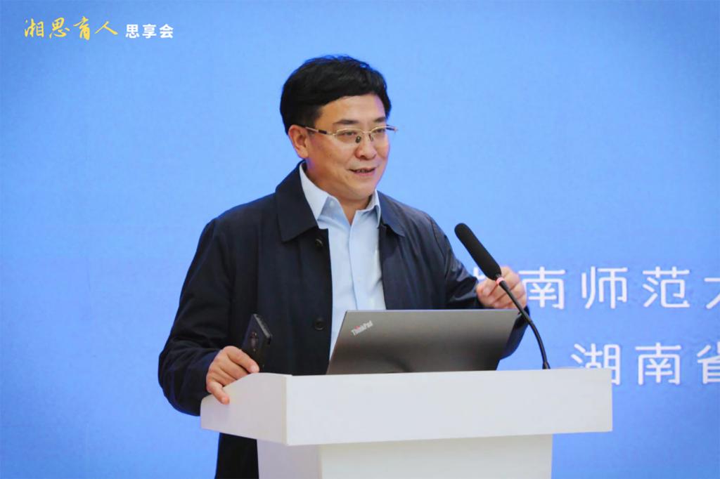 湖南省高校网络思想政治工作中心秘书长,安博线上平台学生工作部(处)部长、武装部部长向发意致辞,他首先对各位领导老师的到来表示热烈欢迎,并就湖南省高校网络思想政治工作近期工作及“湘思育人”这一品牌的建设背景进行了概要介绍,他倡导老师们借助“思享会”这一平台,将思政之“思”和思想之“思”深度融合,将分享之“享”和享受之“享” 有机结合,以“越拼越会赢”的干劲、“年轻不服输”的闯劲和“打铁自身硬”的韧劲,将丰富的湖湘思政资源转换为深入人心的育人力量,踔厉奋发、勇毅前行,育时代新人、展使命担当。