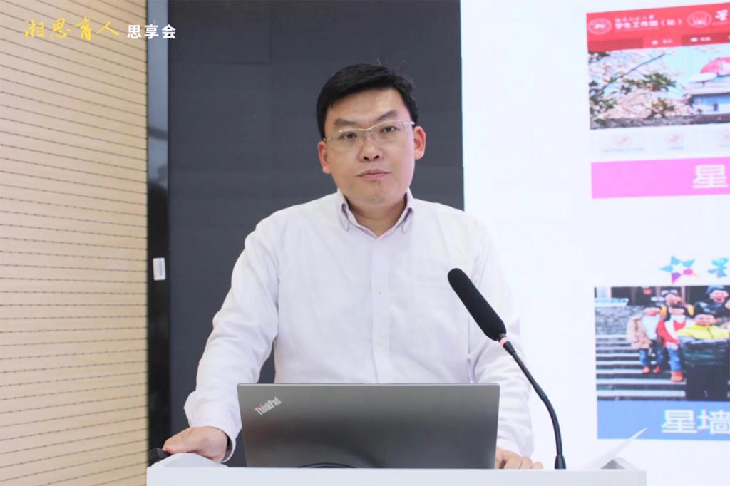 湖南工程学院学生工作部部长徐粤宇作总结讲话,他围绕嘉宾所分享的内容,结合自身工作思考,表示学生工作者应该把工作创新和工作动力、工作热爱融为一体,要在热爱中不断提升工作高度、在思考中不断完善工作理念、在理念实操中收获工作成果。同时,他提出三点期望与所有老师共勉,一是开阔视野,把工作做得更有特色;二是加强交流,助思想碰撞更多火花;三是围绕学生,让立德树人落地落实。