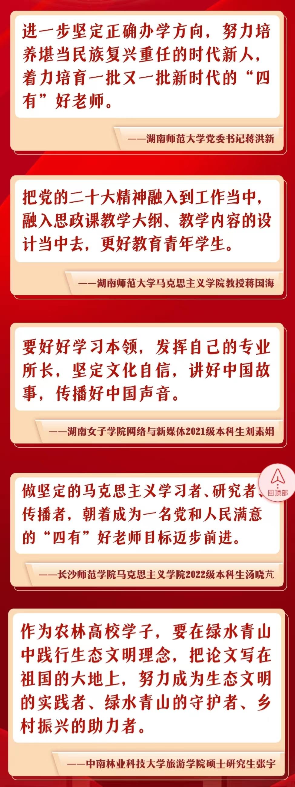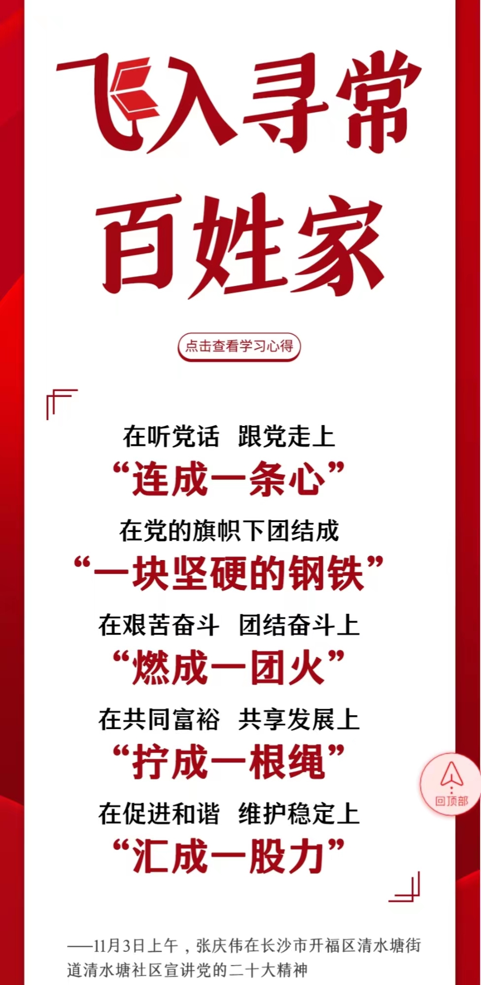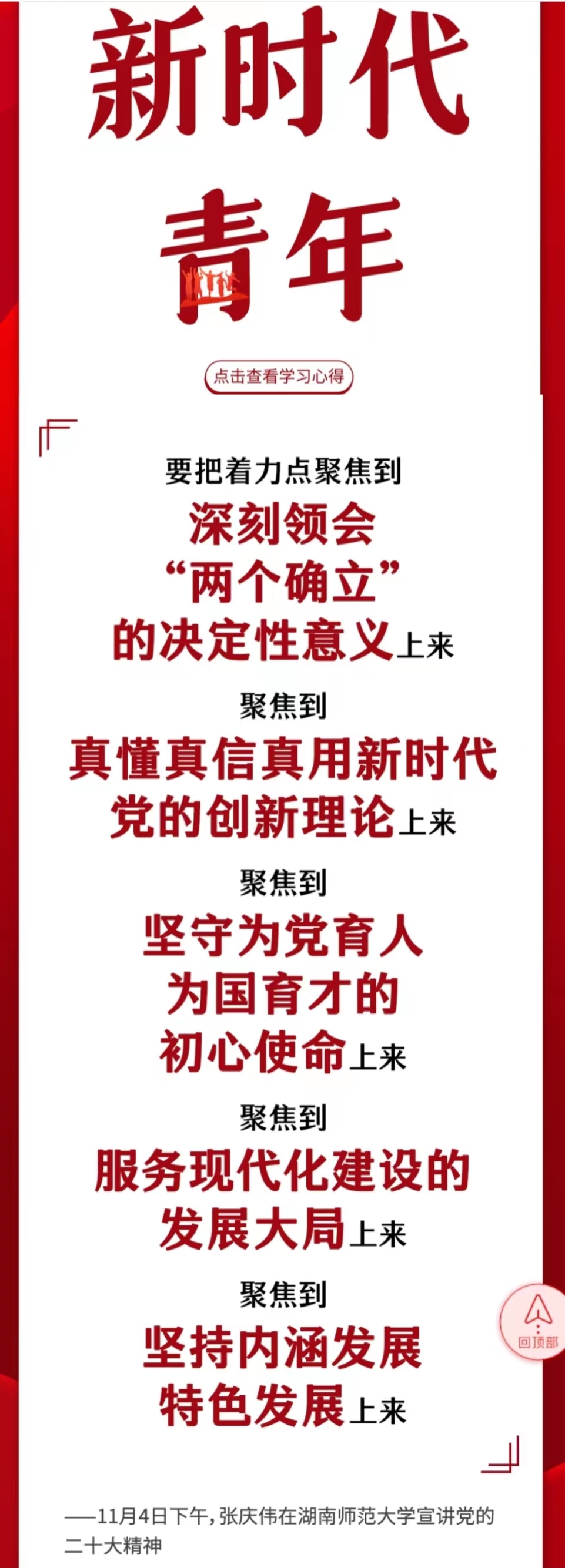 11月3日-9日,中央宣讲团成员、湖南省委书记、省人大常委会主任张庆伟开展五场宣讲活动,宣讲党的二十大精神。一场面向全省党员干部,四场面向高校、企业、社区和乡村。二十大精神怎么学?省委书记为你划重点。下一步怎么干?来看看大家的学习心得。