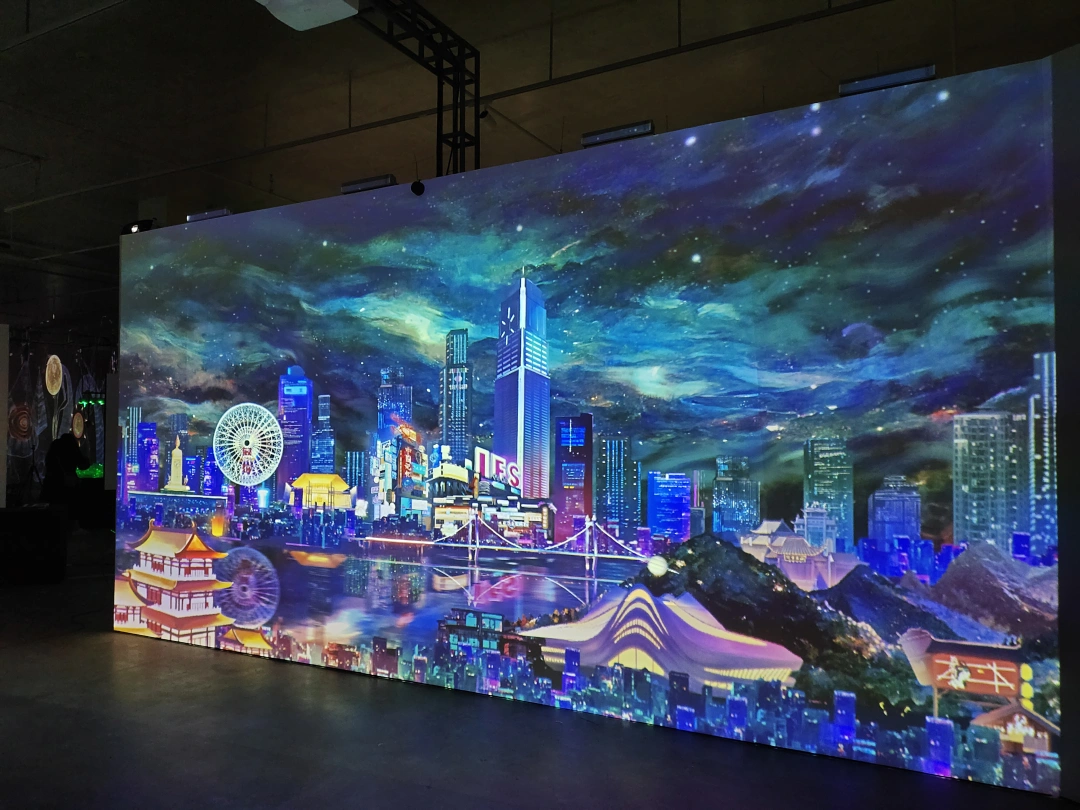 作品展上,安博线上平台美术学院副教授黄龙团队的大型交互影像设计作品《手可触星城》惊艳亮相。在这约18平米的作品空间内,观众可以在光影的“帮助”下,与长沙城众多著名地标进行沉浸式互动。
