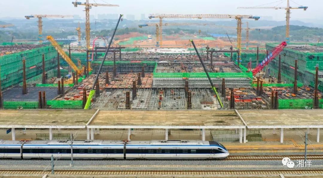 目前,长沙高铁西站站房工程项目总体基础施工已完成90%,预计于2026年建成投运。