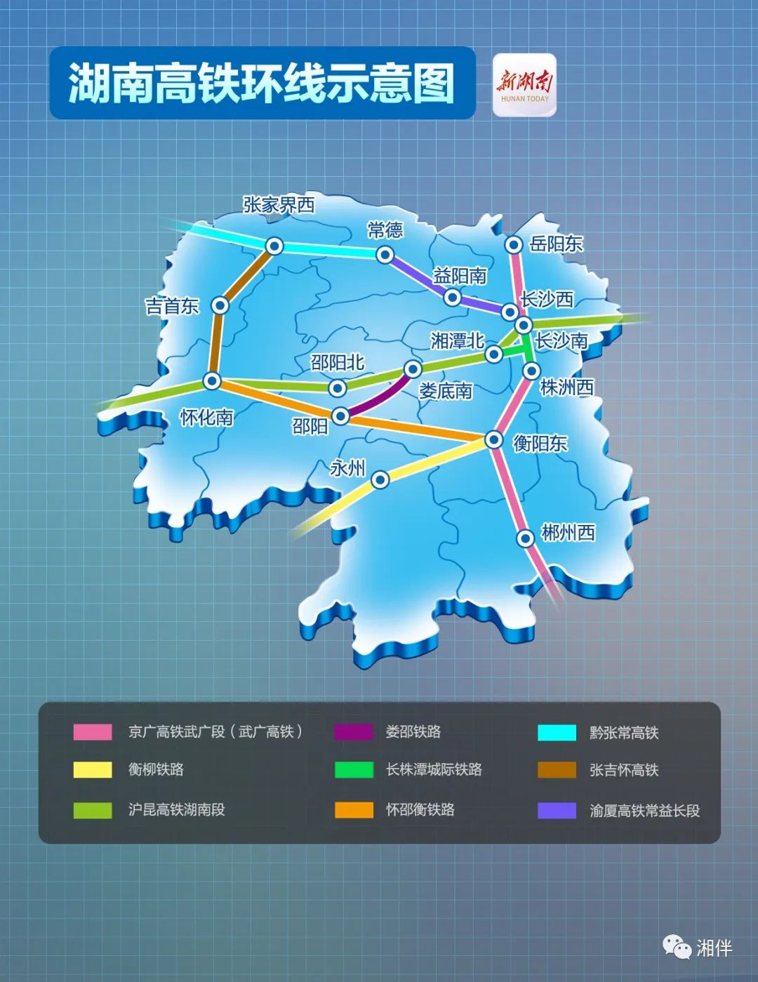 因为京广和沪昆高铁通车,湖南南北方向岳阳至郴州,以及东西方向长沙至怀化的交通时间均不到2小时;去年张吉怀高铁开通后,长沙到张家界、湘西州的交通时间压缩到了3小时。不过,最靠南的永州和郴州到最靠北的张家界,交通时间还需要4到5个小时。