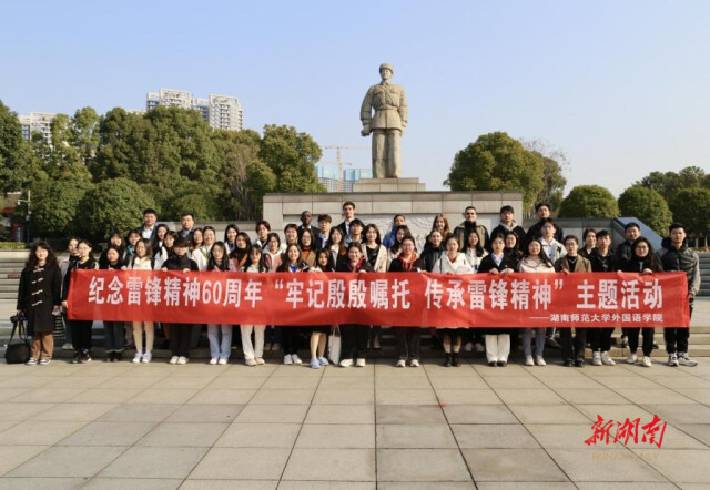 目前,外国语学院学生团队与湖南省中外文化传播研究基地、湖南省外语基础教育研究中心等单位合作建立服务基地20余个,组建的赴湖南雷锋纪念馆社会实践团被共青团中央授予全国大中专学生志愿者暑期“三下乡”社会实践活动“优秀团队”、全国大学生百强暑期实践团队等荣誉。学院打造了“理论研究+文化宣传+志愿服务+社会调研+社区行动”一核五驱的项目模式,构建雷锋精神叙事体系,让青年大学生在学好外语专业、掌握跨文化交流能力的同时,践行雷锋精神、筑牢红色根基。