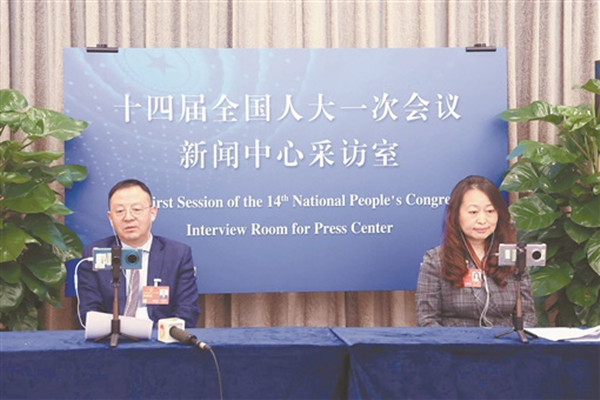 肖北庚(左)、尹双凤(右)代表接受采访。
