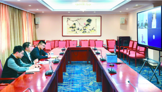 国务院办公厅每年组织旁听全国两会工作,全国两会代表委员的意见建议得到部委快速回应。图为3月8日,科技部成果转化与区域创新司二级巡视员陈宏生(左二)和他的两位同事在科技部与全国政协委员汪鹏飞、隆克平视频连线,就委员提出的加强科技成果转化平台建设等建议进行沟通。 新华社记者 戴天放 摄