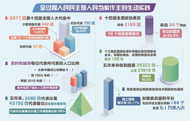 全国两会是中国式民主的重要途径,全过程人民民主是人民当家作主的生动实践
