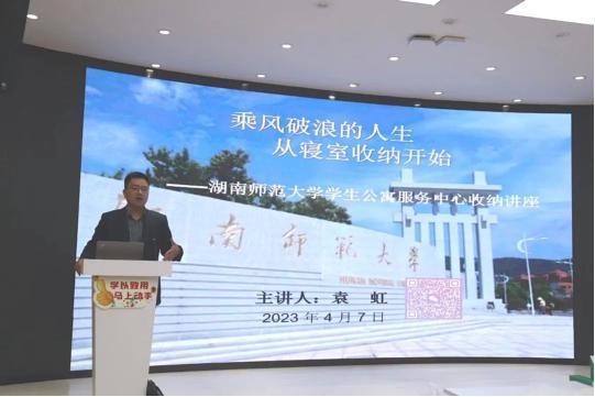 此次寝室收纳讲座旨在解决大学生寝室内务杂乱的老大难问题,唤醒大学生的劳动意识,这是湖南师大后勤加强劳动育人的重要探索。该校后勤管理处处长黄智勇指出:“新时代大学生对生活品质有了更高追求,宿舍不仅要遮风挡雨,更要美观舒适,寝室收纳的讲座有助于提升学生的基本劳动技能,改善寝室内务,是我校后勤育人工作一次很好的尝试,下一步要在全校开展学生公寓内务整理比赛,让大家共同动手打造文明寝室。”讲座开始前,学生公寓服务中心易珊主任阐释了此次讲座的意义,即解决寝室收纳中的具体问题,打造整洁舒适的生活环境,并鼓励同学们将此项劳动技能传播给身边更多的人。收纳师袁虹阐述了理想与现实校园生活的差距,并分享和演示了寝室收纳的方法。她介绍了“集中分类、取舍有道、分区有界、活在当下”的寝室收纳基本原则,讲解了寝室收纳五步法,即“清空、清洁、分类、取舍、收纳”,打开了同学们的收纳思路,示范带领同学们动手自制收纳用品,将生活中随处可见的快递盒、外卖袋等变成收纳神器。最后,老师寄语同学们,要珍惜大学时光,学以致用,知行合一,在寝室收纳的劳动实践中,体会人、物品、空间的平衡关系,在舒适整洁的环境中保持一个更加清晰而又有条理的头脑,更好地迎接生活中的挑战。