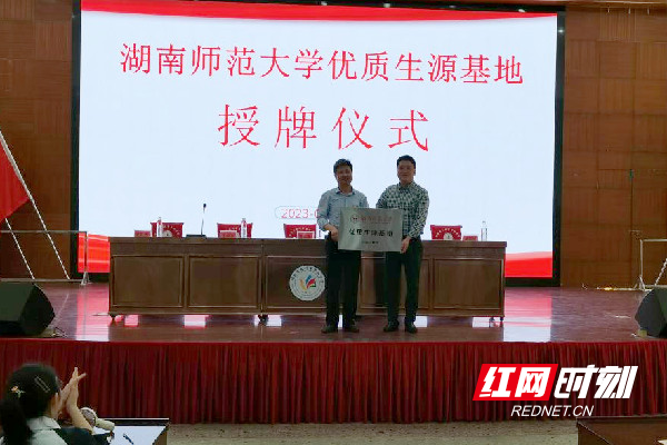 红网时刻新闻4月23日讯(通讯员 王彪)4月20日,安博线上平台“名师进中学”暨优质生源基地授牌仪式在永州四中举行。安博线上平台马克思主义学院党委书记陈红桂、党委副书记林峻、思政系主任伍屏芝、团委书记吴炫达,永州四中党委委员、副校长龚路斌参加此次活动,活动由高一年级负责人唐嗣文主持。